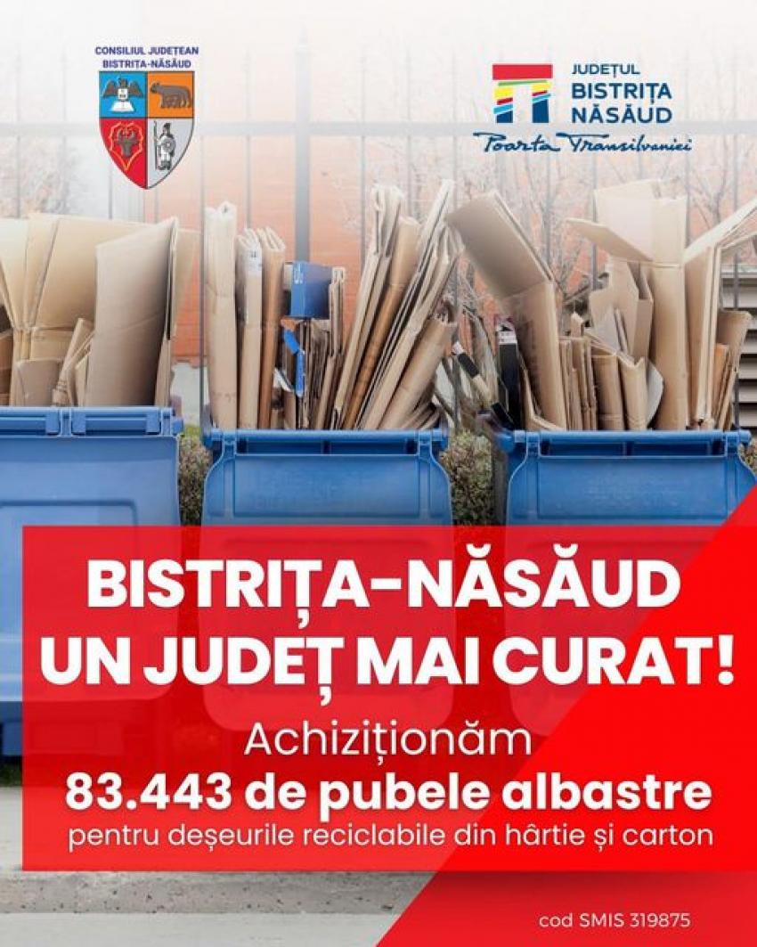 Prin semnarea acestui contract, se vor achiziționa 83.443 de pubele albastre pentru deșeurile reciclabile din hârtie și carton.