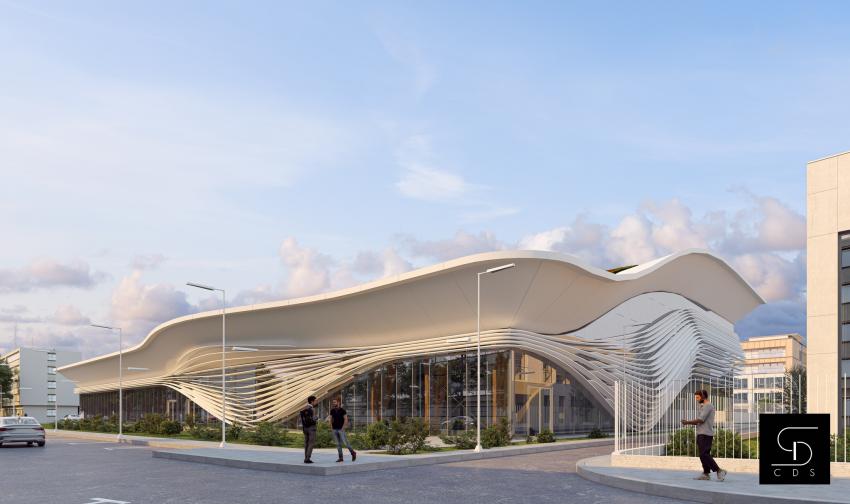 • Săli de sport: clădire P+1E, include 2 săli de sport, cu gradene pentru 150 persoane pentru fiecare sală, dotate pentru activități sportive variate, precum și un teren de sport exterior, amenajat pe terasă.