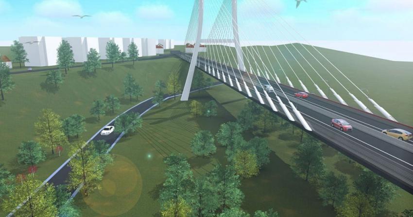 Podul hobanat face parte din Drumul de Centură, cel mai mare proiect de infrastructură din ultimii 30 de ani. Investiţia de aproximativ 40 de milioane de euro prevede modernizarea a 10,45 km de drum, care pe unele porţiuni va avea patru benzi de circulaţie, piste pentru biciclişti, cu o lungime totală de 6,5 km. Vor fi realizate, de asemenea, cinci sensuri giratorii.