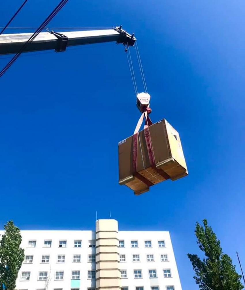 Ultimul aparat medical, care a ajuns astăzi la Spitalul Județean, este un modern echipament radiologic cu grafie și scopie, dotat cu tehnologie de ultimă generație, care permite realizarea de radiografii cu un grad ridicat de complexitate și elimină necesitatea unor expuneri suplimentare. A fost nevoie de folosirea unei macarale pentru a descărca cele 21 de cutii ale aparatului medical.