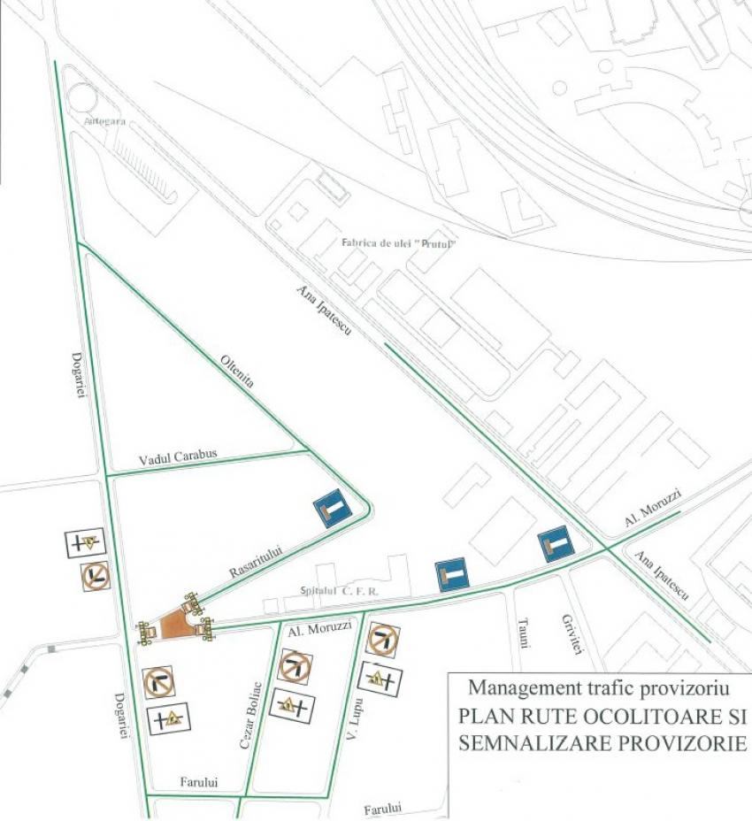 Pentru desfășurarea fluentă a traficului rutier, conducătorii auto și pietonii sunt rugați să respecte semnalizarea rutieră instituită pe durata executării lucrărilor.