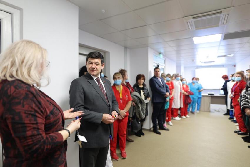 “Am finalizat o nouă investiție extrem de importantă pentru sănătatea gălățenilor, pentru pacienții și personalul medical de la Spitalul de Pneumoftiziologie. Ambulatoriul de Specialitate al acestei unități medicale se mută în casă nouă, într-o clădire modernă, cu spații medicale noi, cabinete pentru consultații și tratament, săli de așteptare, vestiare și lift. Este unul dintre cele mai moderne ambulatorii de pneumologie din țară. Avem și două premiere pentru acest spital. Pentru prima oară în istoria sa, a fost dotat cu un computer tomograf, sala de investigații fiind amenajată în interiorul noii clădiri. Cea de-a doua premieră este faptul că, acum, Ambulatoriul de Specialitate are spații separate de consultații și tratament pentru copii și adulți, pentru a limita cât mai mult transmiterea bolilor”, a declarat Costel Fotea, președintele Consiliului Județean Galați.