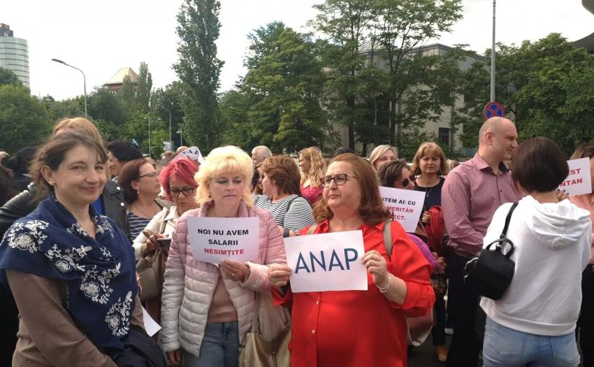 Angajaților Guvernului au declanșat luni un protest spontan. Ei s-au adunat în curtea instituției și cer salarii mai mari.