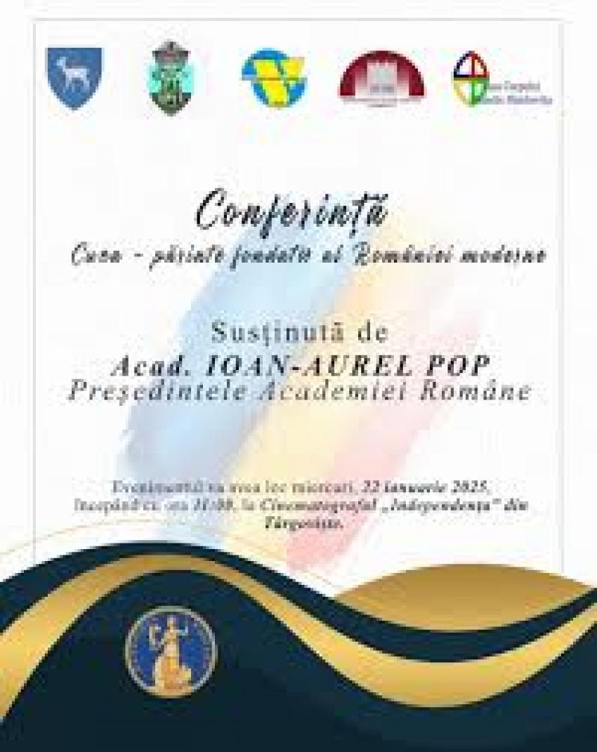 Casa Corpului Didactic Dâmbovița, în parteneriat cu Universitatea „Valahia” din Târgoviște și Inspectoratul Școlar Județean Dâmbovița, cu sprijinul Consiliului Județean Dâmbovița și al Primăriei municipiului Târgoviște, organizează, miercuri, 22 ianuarie 2025, ora 11.00, la Cinematograful „Independența” din Târgoviște, Conferința științifică ,,Cuza – părinte fondator al României moderne”.