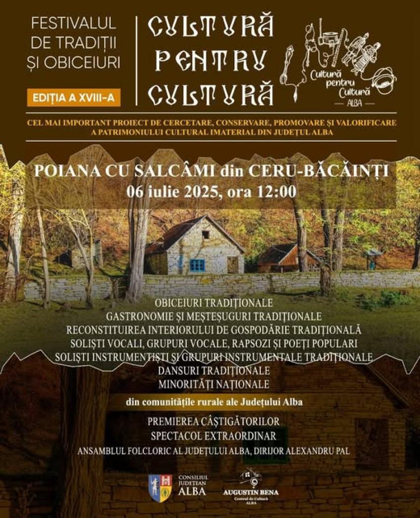 Etapa de la Ceru-Băcăinți promite o zi întreagă de întoarcere la obiceiurile, rosturile și frumusețea satului de odinioară. Grupuri și artiști amatori din satele județului se vor întrece, cu emoție și mândrie, în interpretarea cântecelor tradiționale, recitarea poeziei populare, punerea în scenă a obiceiurilor locale — de la nunta în sat, la secerișul de pe dealuri, dansuri și jocuri tradiționale românești și ale minorităților, reconstituirea gospodăriilor străvechi, meșteșuguri și gastronomie tradițională, unde gusturile copilăriei și poveștile din vatra satului se întâlnesc.