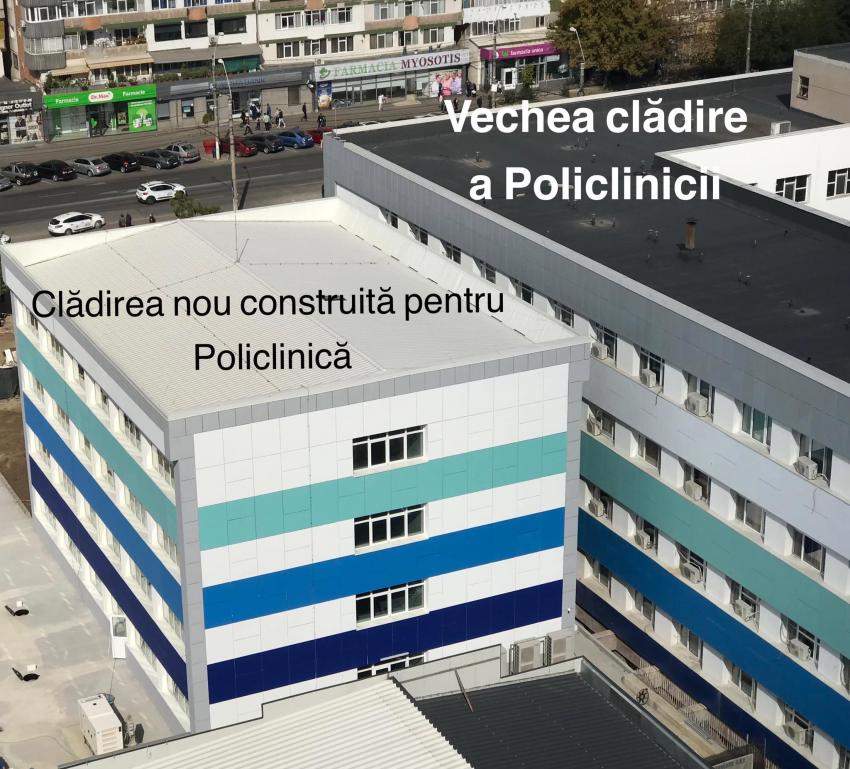 În acest moment, Policlinica Spitalului Județean are două clădiri, una în plin proces de modernizare (vechea clădire) și cea nou construită de către Consiliul Județean (peste 1.500 de mp suprafață desfășurată).