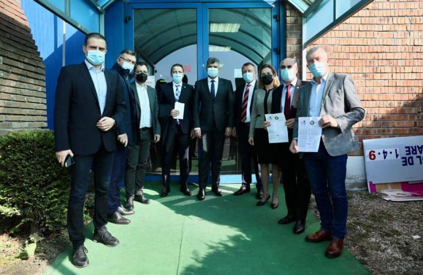 Președintele PSD Marcel Ciolacu și secretarul general al PSD Paul Stănescu împreună cu mai mulți parlamentari PSD s-au vaccinat miercuri, 20 octombrie 2021, cu doza a treia a vaccinului anti-COVID-19, la Centrul de vaccinare de la Romexpo.
