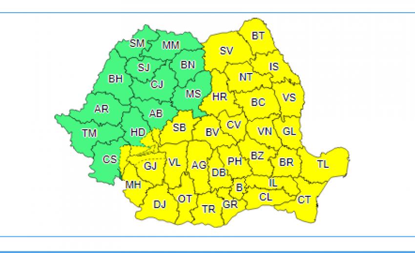 Codul galben anunţat de meteorologi este valabil de la ora 11 până la ora 21, fiind aşteptate intensificări ale vântului şi  instabilitate atmosferică temporar accentuată.